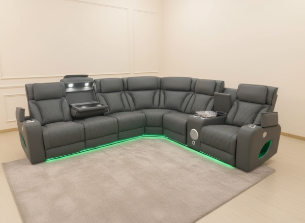 Mary Black Power Reclining Sectional (LED + Console + Drop-Down Tray) Turn your living room into a true home theater with the Mary Black Power Reclining Sectional. Upholstered in a sleek black leather-look finish with diamond-stitched detailing, this sectional delivers a bold, modern look while offering the comfort and built-in […]