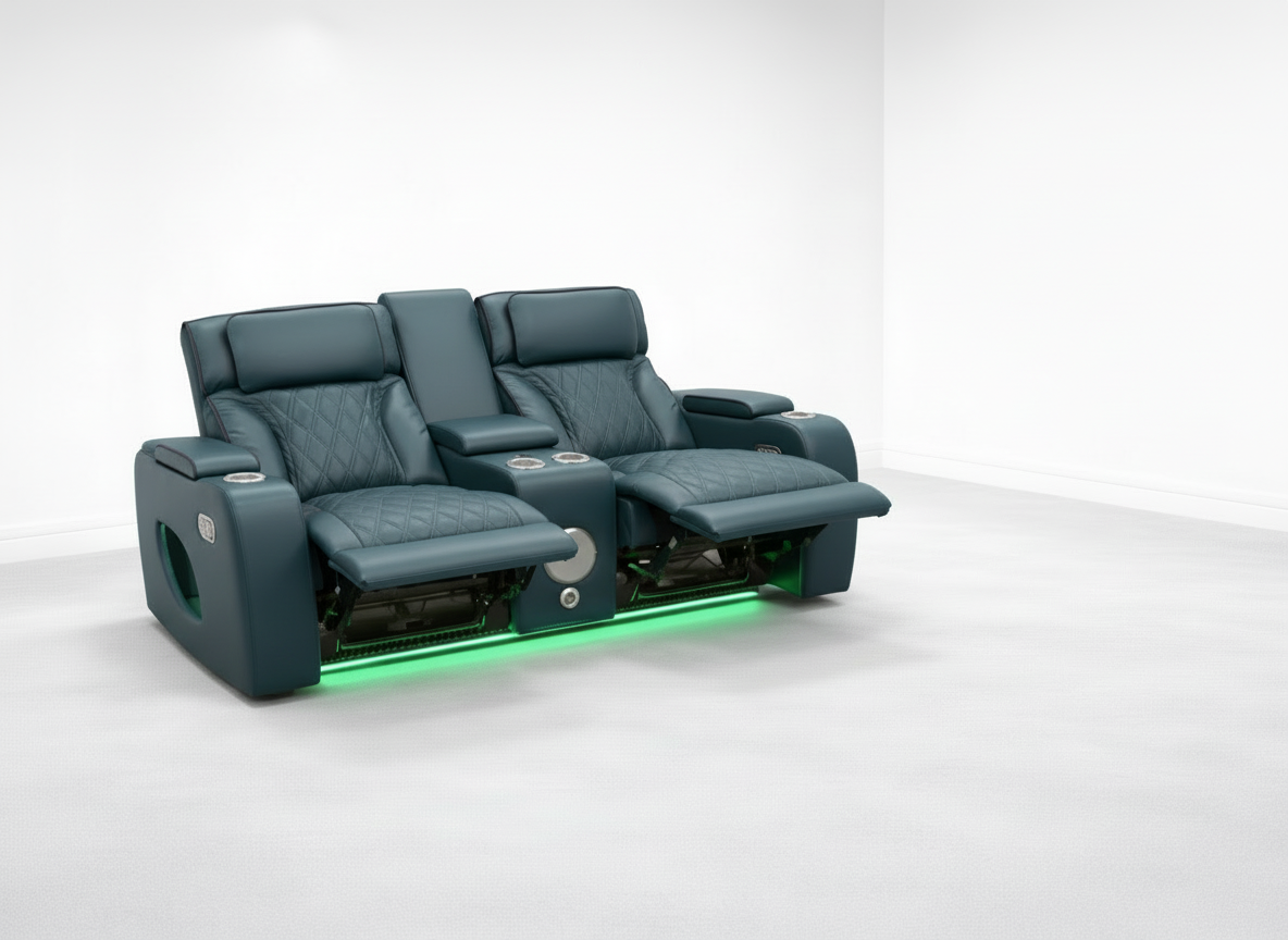 Bring a premium home-theater feel to your living room with the Isabella Power Reclining Loveseat in dark teal blue leather (#243F4A)—a luxury navy/petroleum tone that adds bold, modern style. Designed for two, this loveseat combines plush comfort with built-in convenience, making it perfect for movie nights, entertaining, or everyday relaxing.
