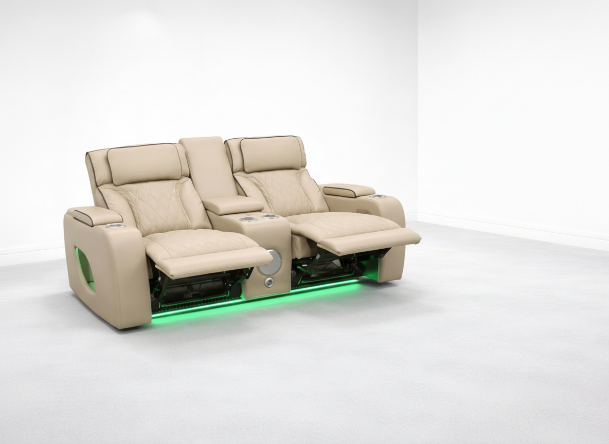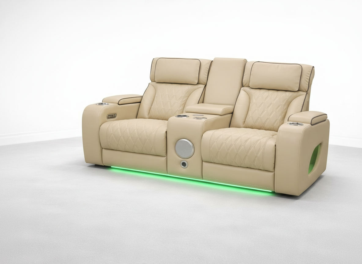 Add a bright, elegant touch to your living room with the Isabella Power Reclining Loveseat in a luxurious champagne cream leather-look finish. Designed with a premium home-theater feel, this loveseat combines modern style, plush comfort, and built-in convenience—perfect for movie nights, entertaining, or everyday relaxing.