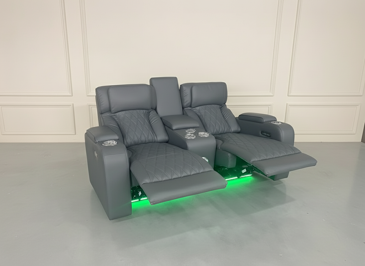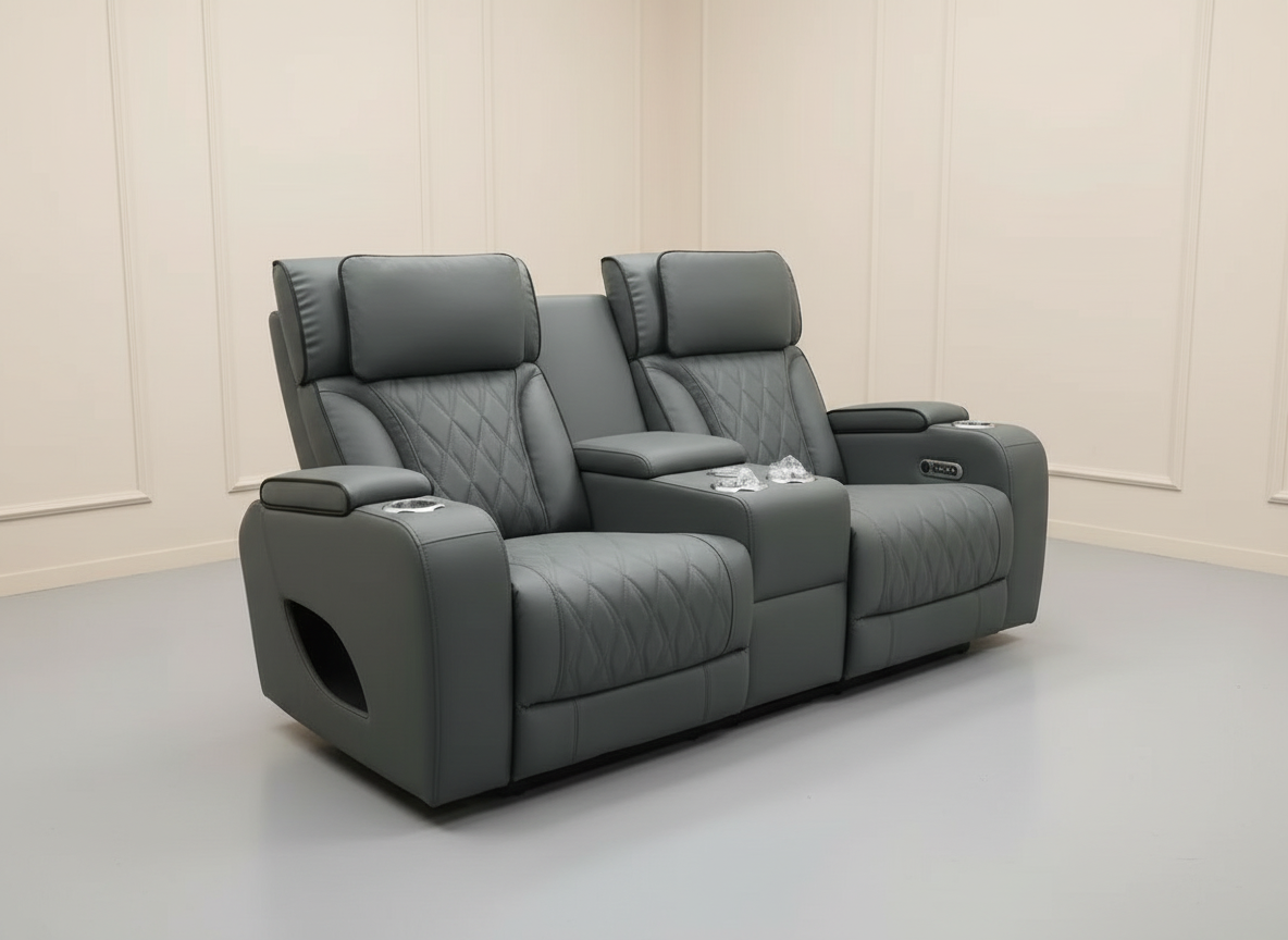 Bring modern comfort and a clean, versatile look to your space with the Isabella Power Reclining Loveseat in a stylish cool gray leather-look finish. Designed with a premium home-theater feel, this loveseat is perfect for movie nights, entertaining, or everyday relaxing—while keeping everything you need within easy reach.